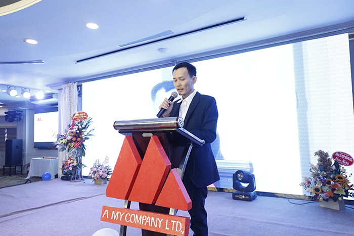Thay mặt công ty, phó giám đốc Vũ Hoài Nam lên phát biểu khai mạc sự kiện đồng thời cảm Qúy khách hàng đã luôn đồng hành cùng các sản phẩm của Á Mỹ trong suốt thời gian qua.