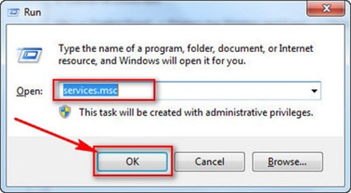 Bước 2: Trong mục open gõ services.msc rồi nhấn OK.