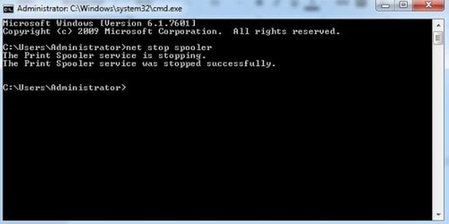 Bước 3: Trong cửa sổ Administrator thấy con trỏ chuột nhấp nháy gõ tiếp cụm từ "net stop spooler" rồi nhấn Enter nếu nhận được được thông báo: The sprint spooler service has stopped successfully thì thực hiện tiếp bước 4.