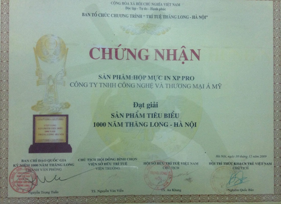 Giải thưởng sản phẩm tiêu biểu 1000 năm Thăng Long Hà Nội do Viện sở hữu trí tuệ cấp năm 2009