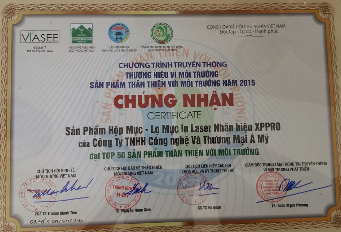 Đặc biệt, mực thay thế xppro được giải thưởng Top 50 sản phẩm thân thiện với môi trường kèm theo cup vàng vào năm 2015.