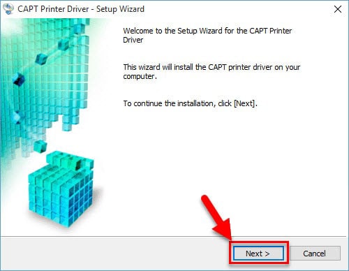 Bước 2: Kiểm tra lại rắc kết nối máy tính và máy in và tiến hành cài đặt file đã tải về.