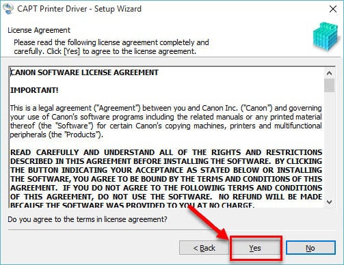Bước 4: Nhấn nút Next để bắt đầu cài đặt và chọn Yes để đồng ý với điều khoản nhà cung cấp đưa ra.