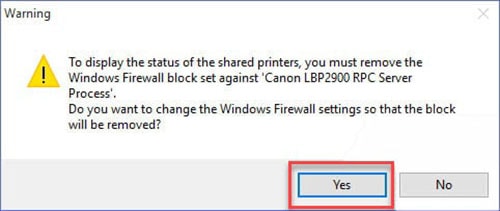 Bước 6: Cửa sổ hiện thị cảnh bảo tường lửa cho máy in xuất hiện. Bạn nhấn Yes để tiếp tục quá trình cài đặt.