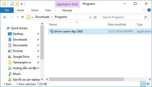 Bước 1: Bạn download bản driver máy in Canon LBP 2900 về máy của mình. Ví như bản driver cho hệ điều hành Windown 7 - 64 bit tại đây hoặc bạn có thể tìm kiếm các bản chính xác hơn cho máy tính của bạn trên google.
