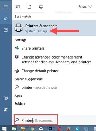 Bước 1: Nhấn mở Start ở góc màn hình và gõ cụm từ “Printers & Scanners”.