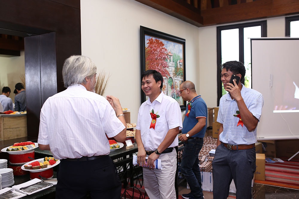 Các khách mời vừa trò chuyện vừa thưởng thức trà và bánh