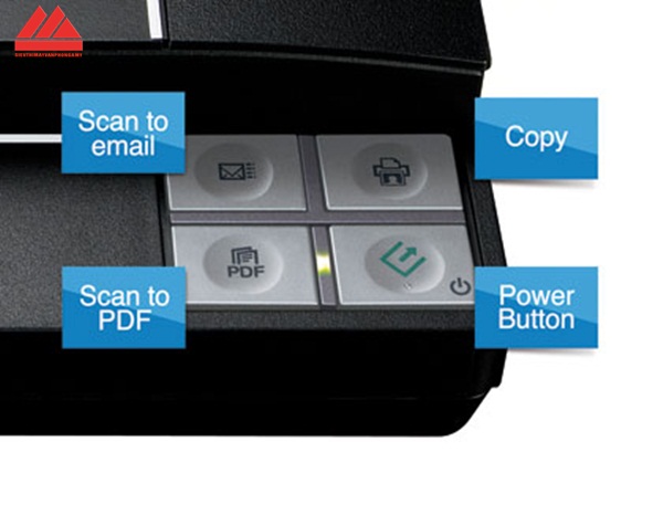 Máy scan Epson V370 được trang bị hệ thống các nút điều khiển và được bố trí thông mình với 4 nút điều khiển: Scan to Email, scan to PDF, copy, pow.
