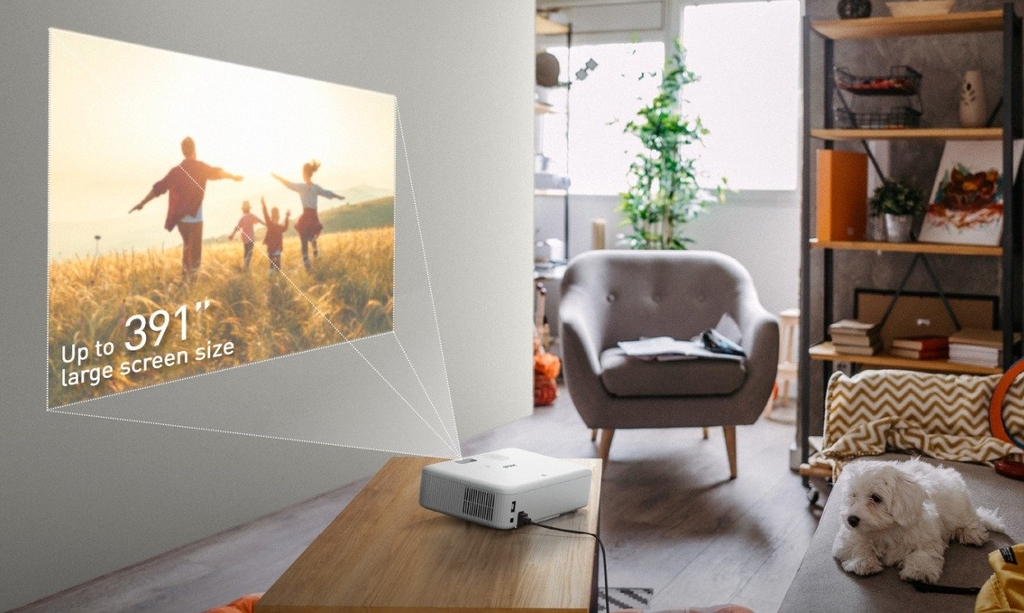 Máy chiếu dùng cho giải trí gia đình: Máy chiếu có độ phân giải cao (HD hoặc 4K) để xem phim, chơi game.