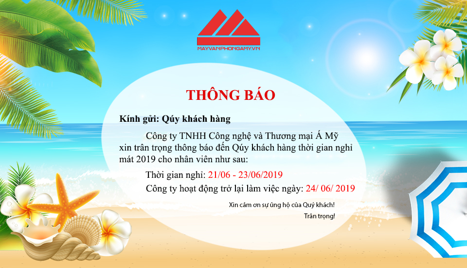 Với mong muốn đem lại mang lại niềm vui, sự gắn kết cũng như tạo điều kiện cho toàn thể CBCNV vui chơi, nghỉ ngơi sau những ngày làm việc vất vả. Công ty TNHH Công nghệ và Thương Mại Á Mỹ tổ chức chương trình du lịch nghỉ mát hè 2019 cho toàn thể nhân viên công ty. Vì vậy, chúng tôi trân trọng thông báo tới Quý khách hàng, Quý đối tác được biết để thuận tiện cho việc liên hệ công tác: